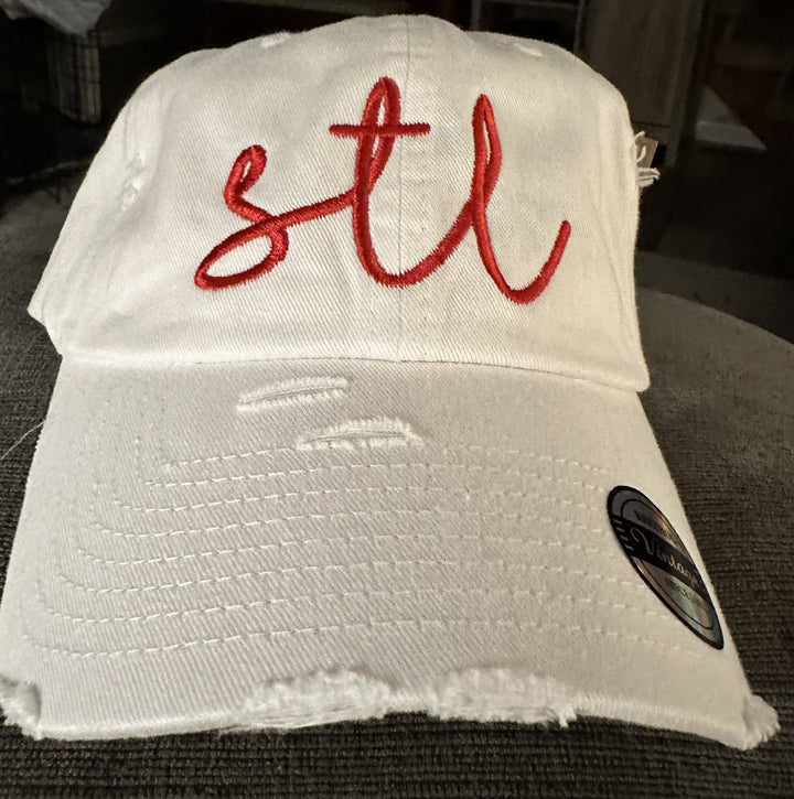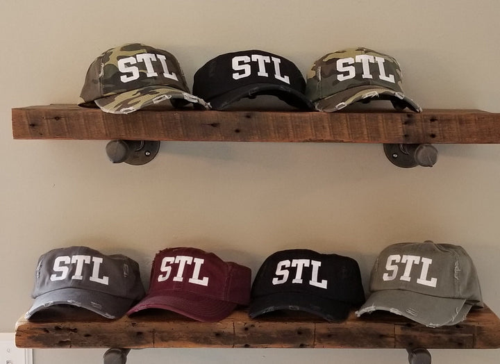 STL distressed hats-lots of colors availble-can change to any letters you'd like-black, olive, nickel, camo,red,burgundy