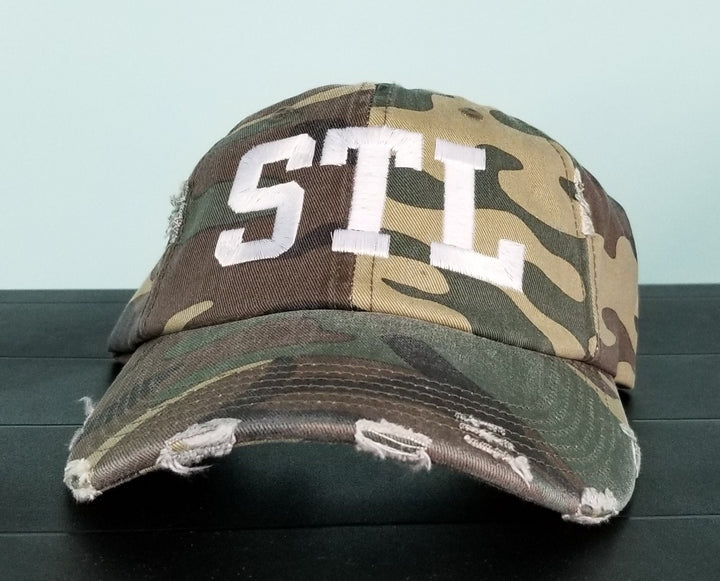 STL distressed hats- camo,red,black-saint louis,baseball hats, st.louis apparel