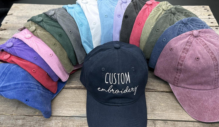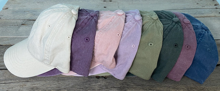 Pigment Dyed Hat with custom text, Custom Embroidered hat, dad hat, unisex, Bachelorette, group hats, bridesmaid gift, garment washed hat