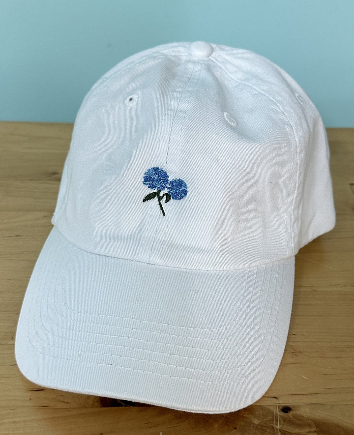white Hydrangea Baseball Hat~Flower Dad Hat~Pigment Dyed Hat