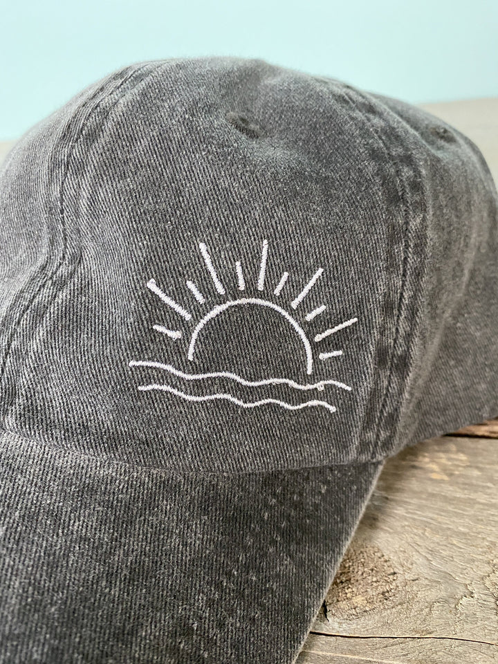 Sunshine Ocean Embroidered Dad hat ~pigment dyed~beach~lake~waves