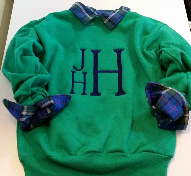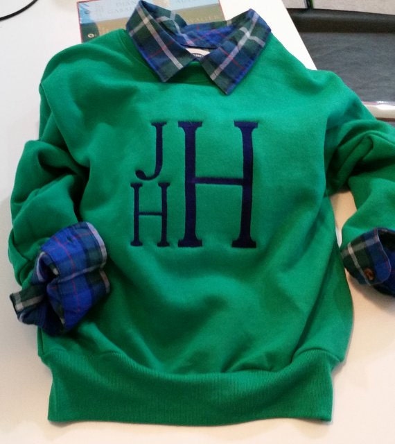 Boys Stacked Monogrammed Crewneck Sweatshirt Children Youth Large Monogram Block
