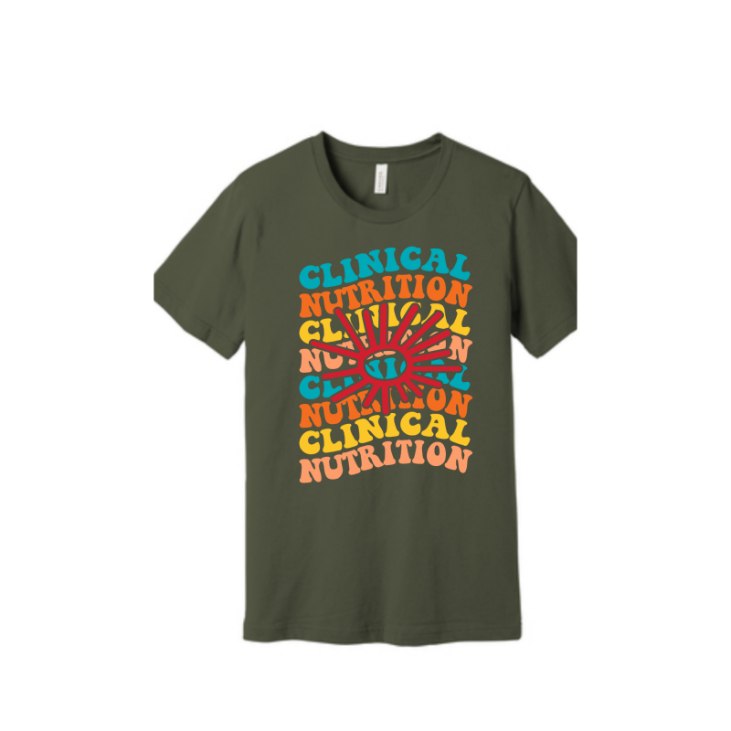 Bella Canva T Shirt w/Clinical Nutrition full front print.