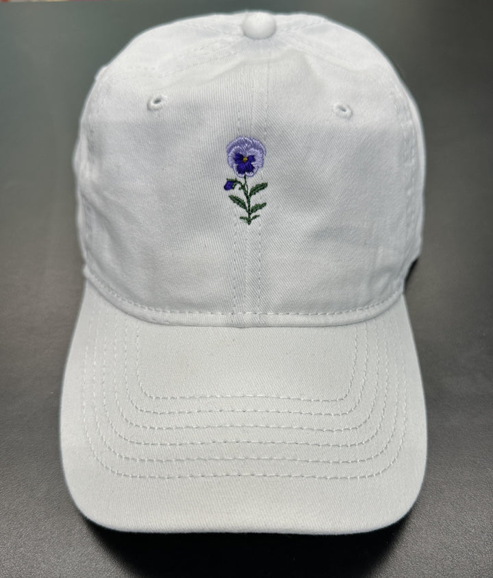 Tiny Violet Flower Hat, February Birth Month, Birth Month Flower Hat, Embroidered Hat, Lavendar, Marigold, Daffodil, Violet