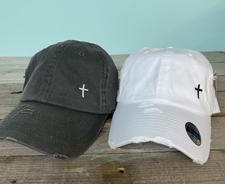 Dad hat w/embroidered Cross design~side placement~distressed hat~faith hat~christian hat