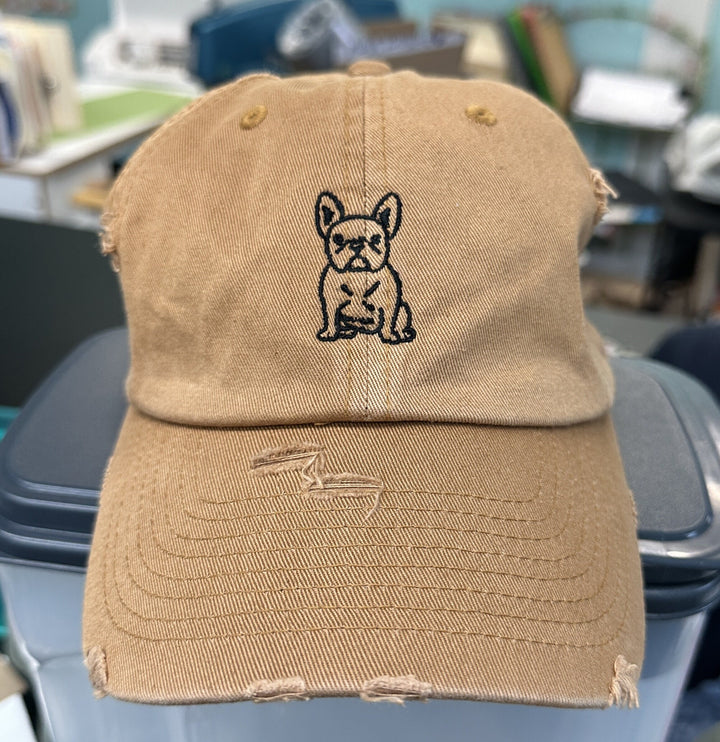 Frenchie Bulldog Baseball Hat~Mustard~french bulldog~dad hat~embroidered~distressed hat