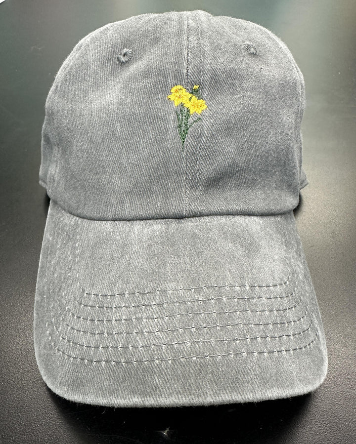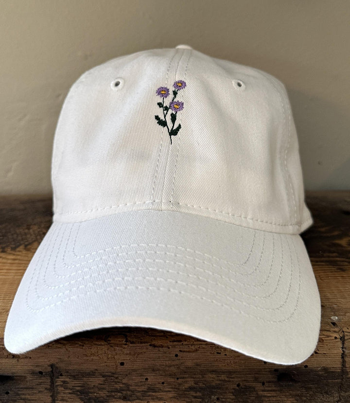 Dainty Flower Pigment Dyed Baseball Hat, Lavendar Flower, Wildflower Hat, Birth Month Flower Hat, Embroidered Flower Hat, Minimalist Flower