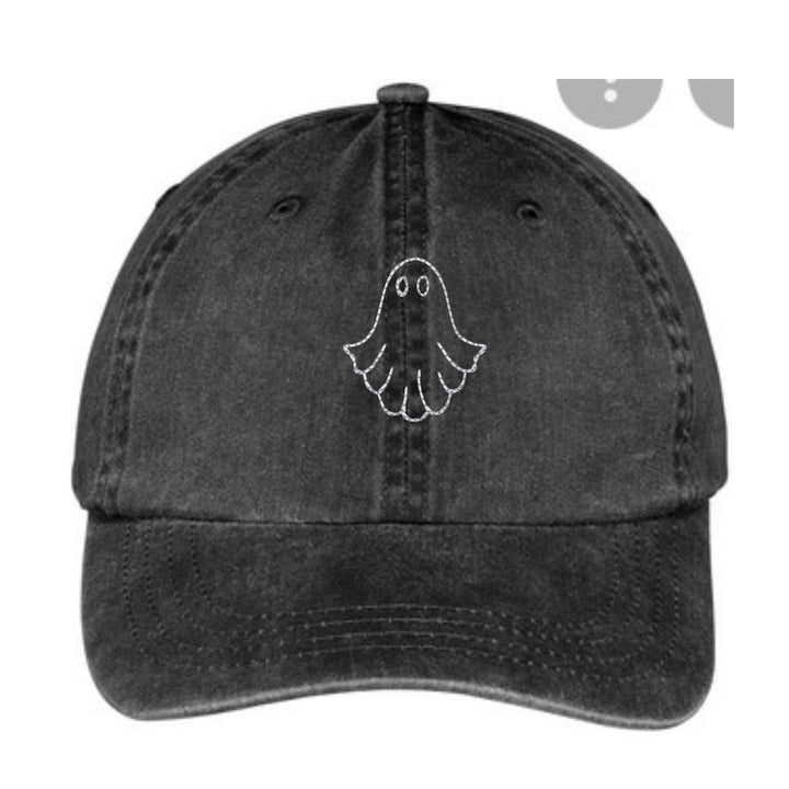Ghost Embroidered Dad hat ~pigment dyed~spooky ghost~halloween baseball hat~fall hat
