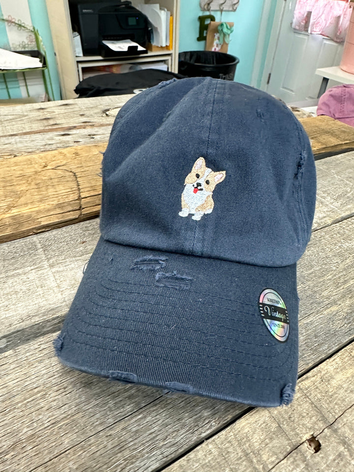 Navy Distressed Corgi Baseball Hat~ Dad Hat-Dog Hat