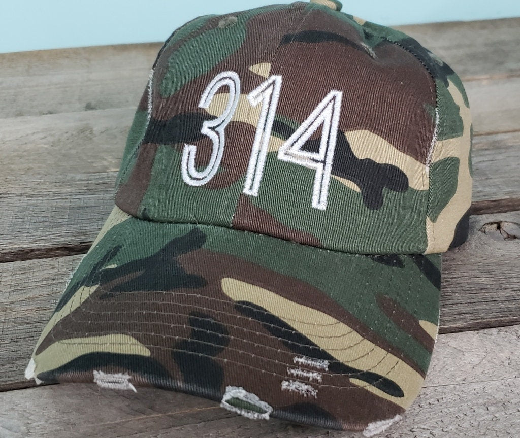 314 Area Code Distressed baseball hat St.Louis camo airport city abbreviation cap