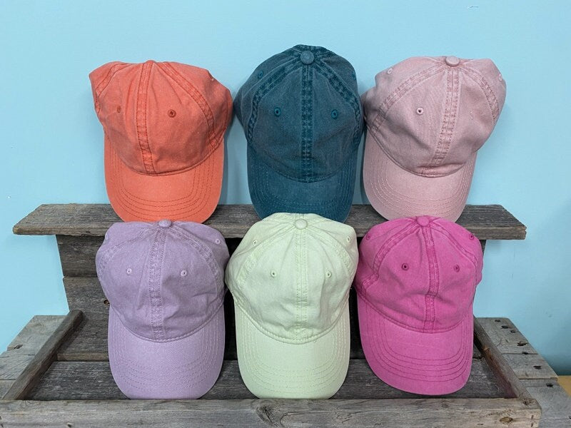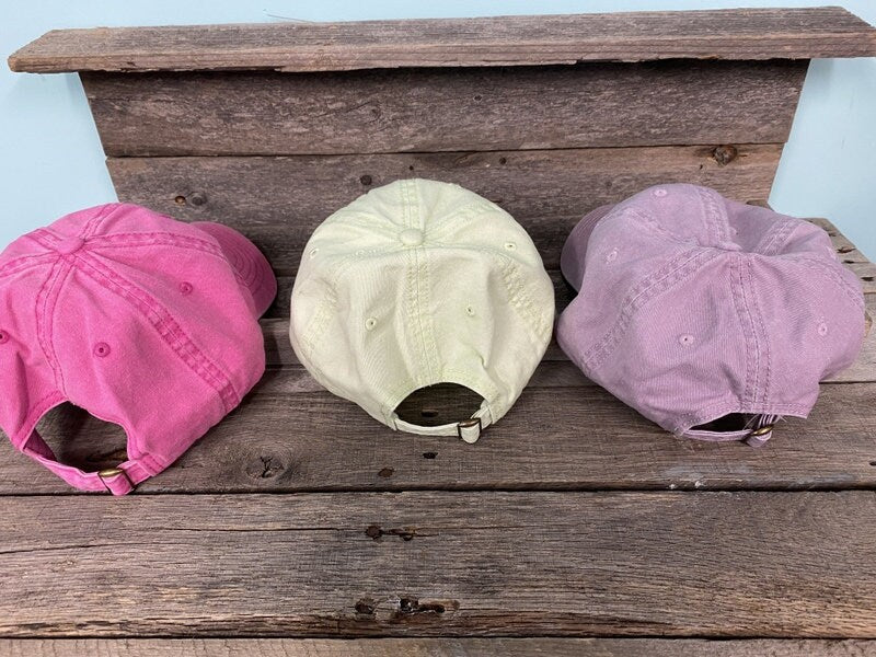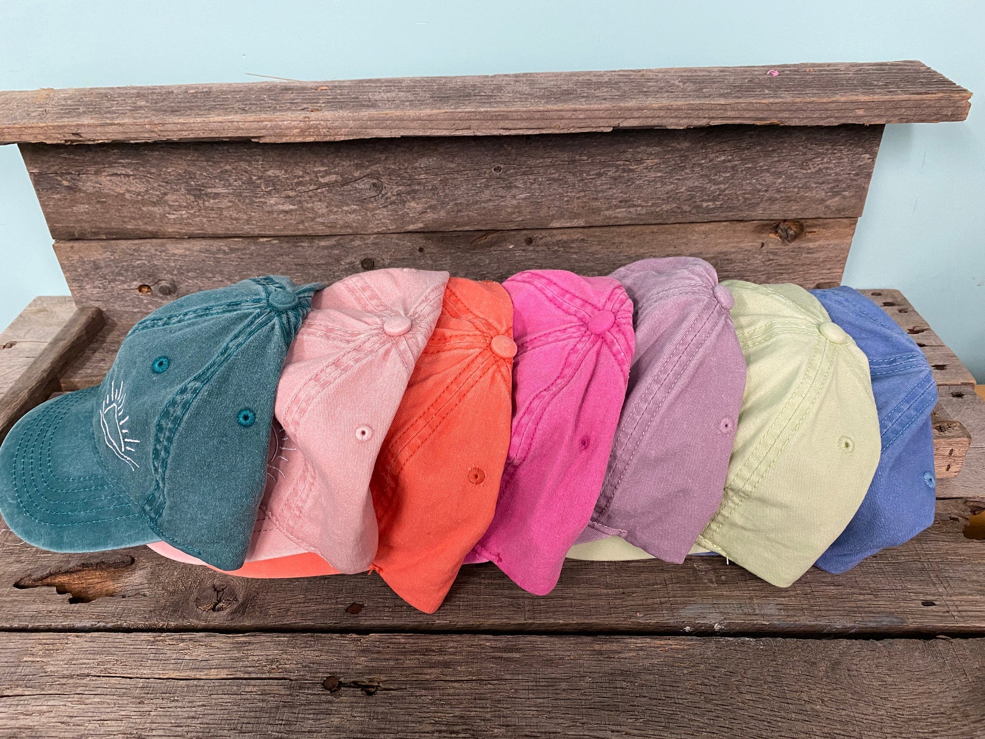 Pigment dyed baseball cap perfect for summertime fun! Wear at the beach, lake or anywhere you want.