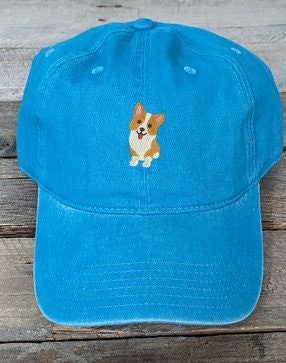Pigment Dyed baseball Hat with embroidered Corgi design