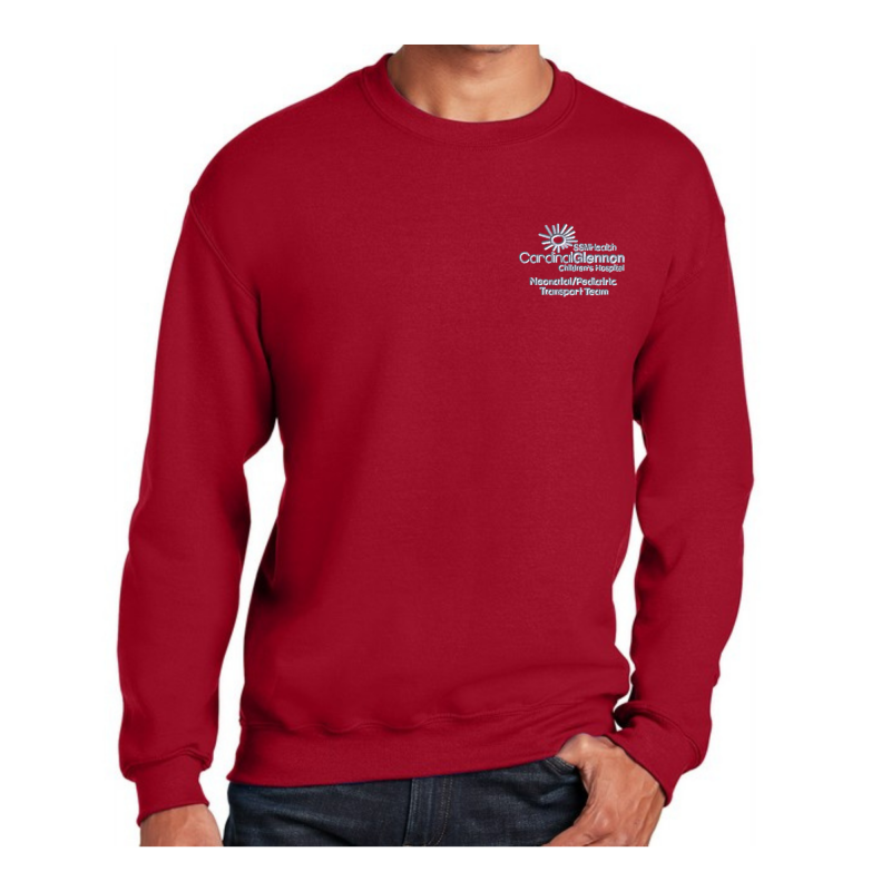 Crewneck Sweatshirt w/embroidered Cardinal Glennon Transport Team Logo