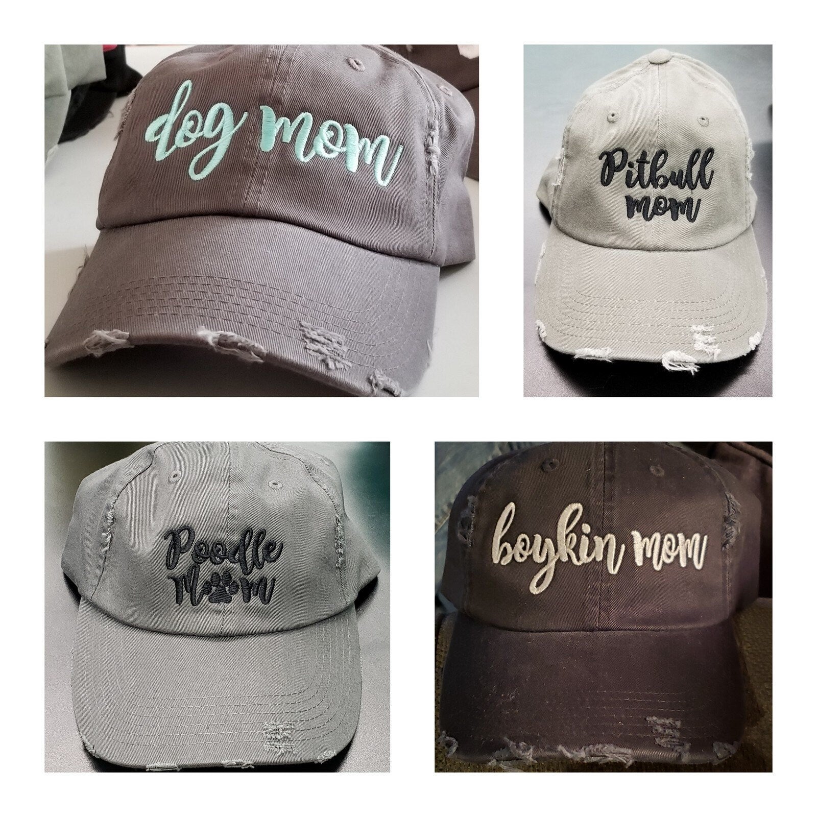 Dog Mom Distressed Baseball Hat Custom Poodle Boykin Pitbull Adjustable Metal Back Multiple Colors