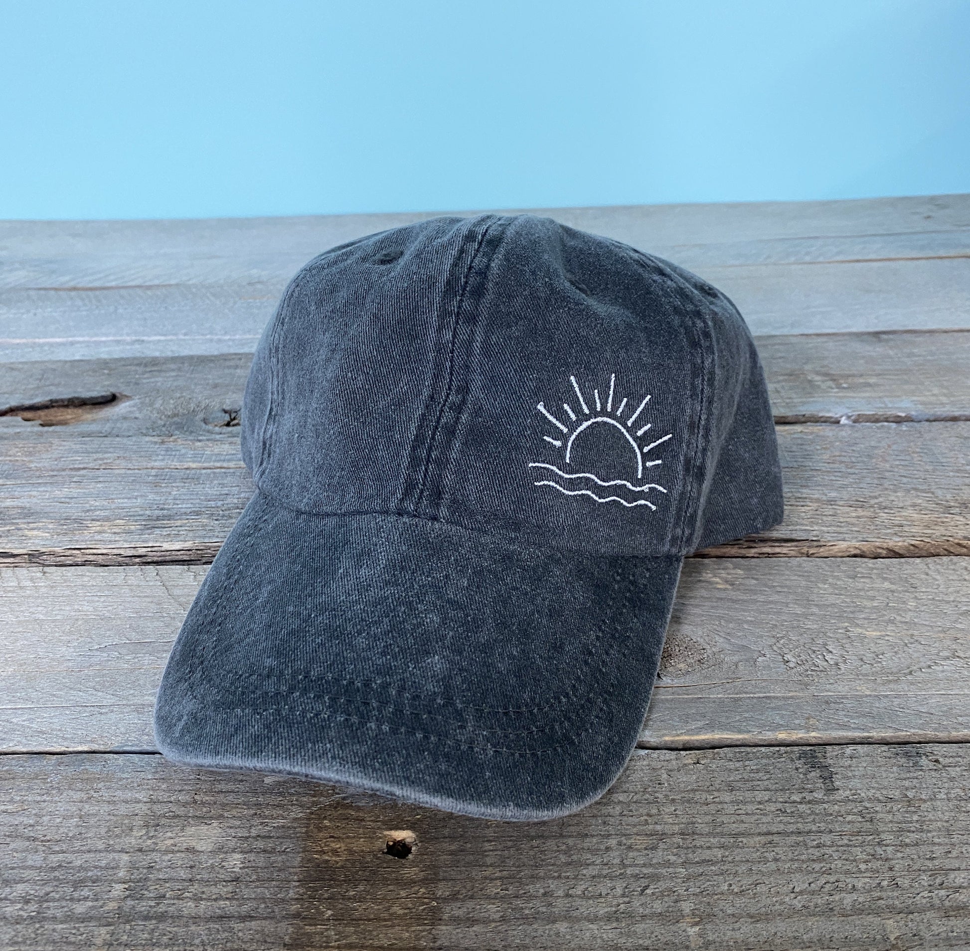 Sunshine Ocean Embroidered Dad hat ~pigment dyed~beach~lake~waves